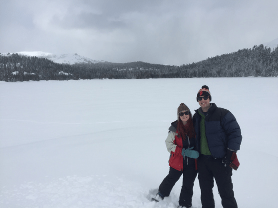 The aforementioned Lake Alpine was completely frozen over with a nice thick layer of fresh powder on top, which allowed us to do the Jesus thing and walk across the lake to a rock formation and survey the surrounding area. A light snow was beginning to fall and while I was exhausted from the hike, the surveying scene was serene. It made me think to myself, “I have to do this much much more”. On top of that, for those that know of my birding side, we went on a short hike on the day we left and came upon a small pond with a lone Common Merganser swimming playfully by itself. It was an odd scene but it was a perfect description of the beautiful isolation that was Arnold.