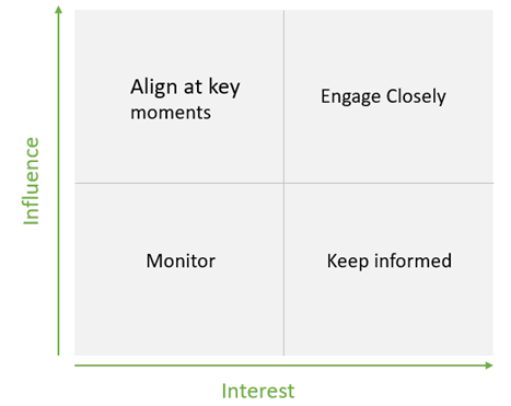In the world of sustainable product management, no two stakeholders are alike. Some require consistent communication and reassurance, while others only want to be involved at key milestones. It’s helpful to use a framework like classifying stakeholders based on their influence and interest. High-influence, high-interest stakeholders—like your director level or above as well as your key community partners—should be actively engaged throughout the product lifecycle. Meanwhile, those with lower interest may only need updates but shouldn’t be ignored entirely.