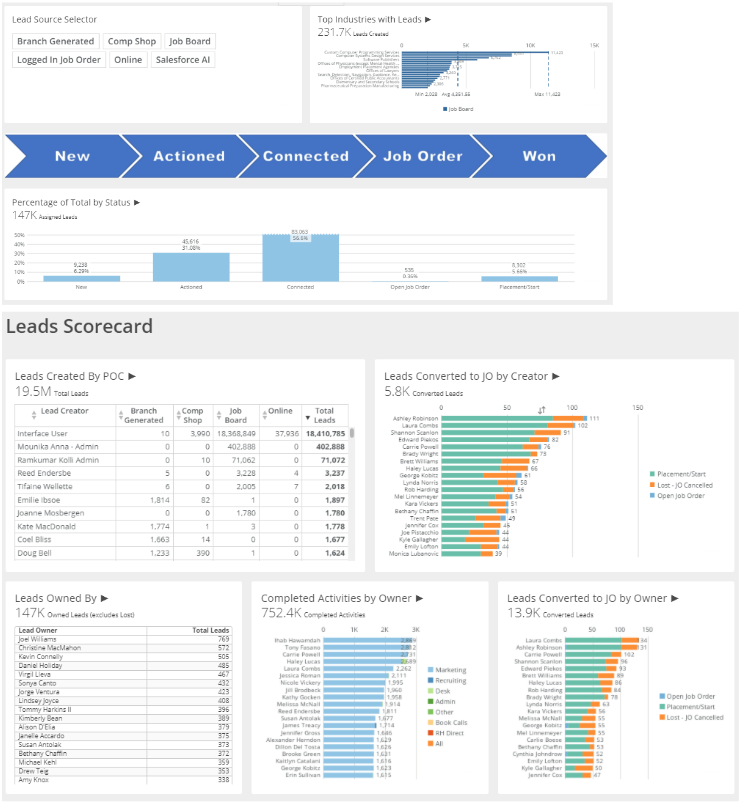 At Robert Half, building robust data powered visuals was crucial for making informed product-led decisions. The data needed to be clear and easy to interpret in order to effectively communicate understanding to stakeholder groups. I specialized in using tools like DOMO, Tableau, and Salesforce for report building and data dashboards