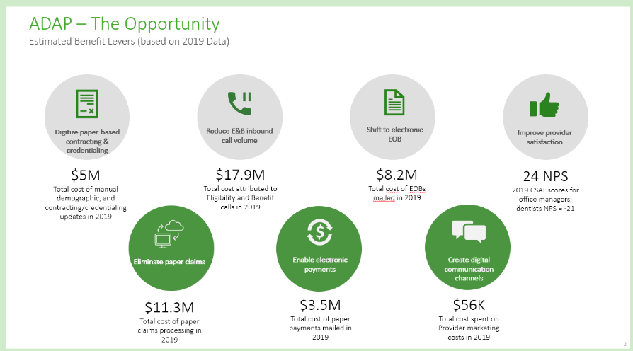 At Delta Dental, the Provider Portal completely digitized a dental office’s operations, automating workflows and facilitated communication between the insurance company and the provider. This digital tool reduced the need for physical paperwork saving both the provider and the company millions in paper costs and downstream impacts to the customer contact center.